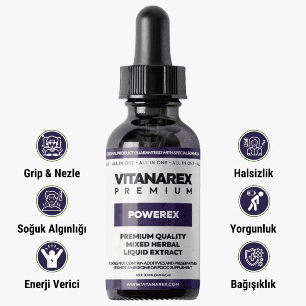 Orijinal fiyat: 6,000₺.1,499₺Şu andaki fiyat: 1,499₺.Vitanarex Premium Powerex Damla 30ML (Bağışıklık,Halsizlik, Enerjisizlik,Yorgunluk, Soğuk Algınlığı, Faranjit, Grip,Nezle) Tedavisi